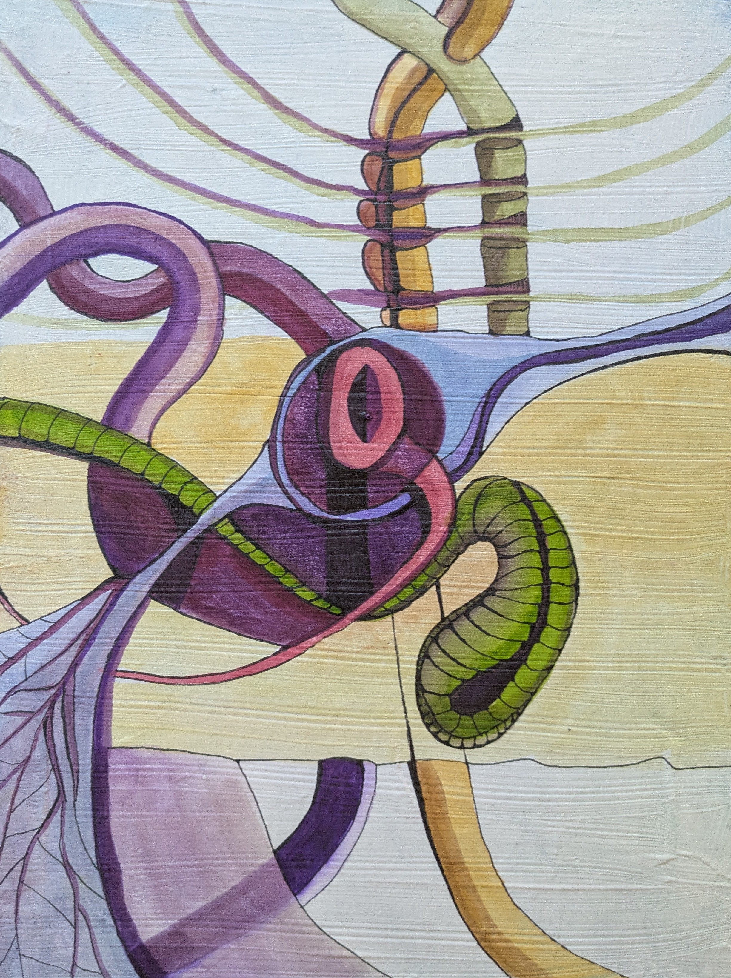 “Refinement: III” can be seen as a visual metaphor for an internal process of clarification and growth. It likely represents a specific stage (“III”) in a larger journey of personal development. The artwork captures the complexity and fluidity of this process, where different aspects of the self (represented by the various forms and colors) are examined, integrated, and ultimately refined. The piece embodies the artist’s journey of turning abstract feelings and intuitive impulses into a structured and meaningful visual form.